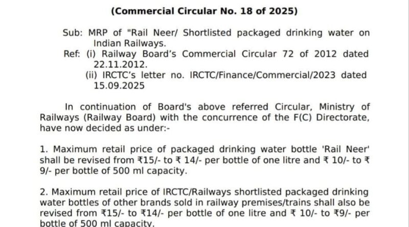 রেলপথে পানীয় জলের দাম কমালো রেলওয়ে বোর্ড