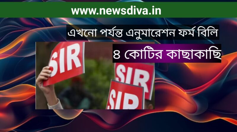 গোটা রাজ্যে শনিবার বিকেল চারটে পর্যন্ত এনুমারেশন ফর্ম বিলি হয়েছে দুরন্ত গতিতে। নির্বাচন কমিশন সূত্রে খবর, সংখ্যা পৌছেছে ৪ কোটির কাছাকাছি। রবিবারের মধ্যে ৫ কোটির দোরগোড়ায় পৌঁছে যাবে এই সংখ্যা। পশ্চিমবঙ্গ সহ ১২ টি রাজ্যে এই মুহূর্তে চলছে এসআইআর। পশ্চিমবঙ্গের সিইও মনোজ কুমার আগরওয়ালের নেতৃত্বে এনুমারেশন ফর্ম বিলি ব্যাপক গতিতে এগোচ্ছে। ইতিমধ্যেই চালু হয়ে গিয়েছে অনলাইন পরিষেবা। আগামী সপ্তাহের মধ্যেই গোটা পশ্চিমবঙ্গের ভোটারদের কাছে পৌঁছে যাবে এনুমারেশন ফর্ম।