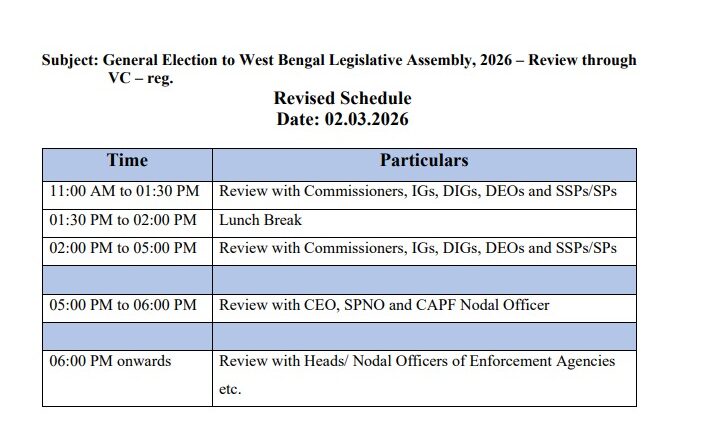 ২ মার্চ দুটি ধাপে সকাল ১১ টা থেকে বিকেল ৫ টা পর্যন্ত রাজ্যের সমস্ত জেলাশাসক বা জেলা নির্বাচনী আধিকারিক , জেলা পুলিশ সুপার , সব পুলিশ কমিশনার, আইজি ডিআইজি দের সঙ্গে বৈঠক করা হবে। এরপর ভিতের পাঁচটা থেকে ছয়টা পর্যন্ত রাজ্যের মুখ্য নির্বাচনী আধিকারিক বা সিইও, রাজ্যের পুলিশ নোডাল অফিসার এবং কেন্দ্রীয় বাহিনীর মডেল অফিসারের সঙ্গে বৈঠক করবে কমিশন। সন্ধ্যে ৬ ট থেকে রাজ্যের বিভিন্ন আইন শৃঙ্খলা রক্ষাকারী এজেন্সি গুলোর সঙ্গে বৈঠক করা হবে। প্রসঙ্গত, আয়কর দপ্তর, ডাক বিভাগ, ইডি, সিবিআই, শুল্ক দপ্তর, আবগারি দপ্তর, ভারতীয় রিজার্ভ ব্যাংক, ভারতীয় রেল বিমানবন্দর কর্তৃপক্ষ সহ বিভিন্ন বাহিনীর রাজ্যস্তরের প্রধানরা এই বৈঠক উপস্থিত থাকবেন। স্বাভাবিকভাবেই এই গুরুত্বপূর্ণ বৈঠকের মাধ্যমেই রাজ্যে নির্বাচনী প্রস্তুতির দামামা বাজবে বলে উল্লেখ করা যায়। তবে চূড়ান্ত ভোটার তালিকা প্রকাশের পর রাজ্যের আইন-শৃঙ্খলা পরিস্থিতি থেকে শুরু করে নির্বাচনী প্রক্রিয়া চলাকালীন ভাবে আইনশৃঙ্খলা পরিস্থিতিকে অনুকূলে রাখা যায়। তা নিয়ে বিশদে আলোচনা হবে তা বলাই বাহুল্য।