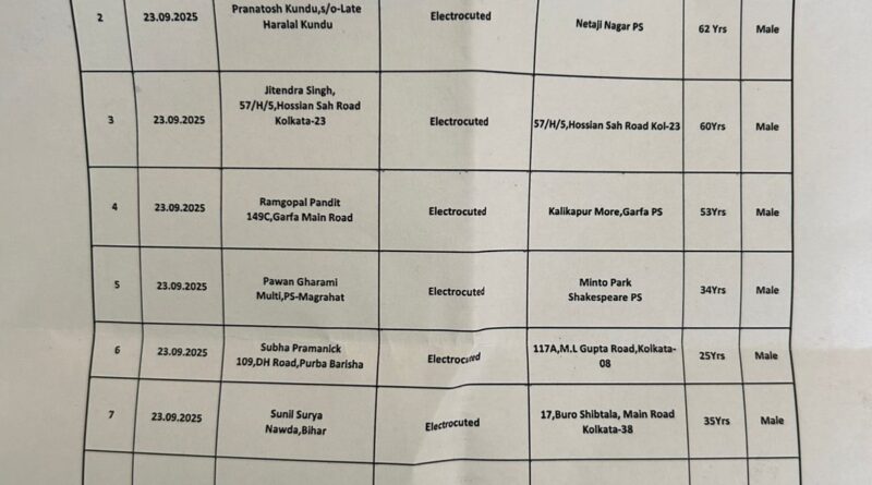 3) *জিতেন্দ্র সিং*– খিদিরপুরের হুসেন শাহ রোডের বাসিন্দা। বিদ্যুৎস্পৃষ্ট হয়ে মৃত্যু।