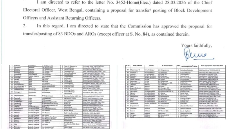 প্রথম দফা নির্বাচনী বিজ্ঞপ্তির প্রাক্কালে ৮৩ বিডিও বদল